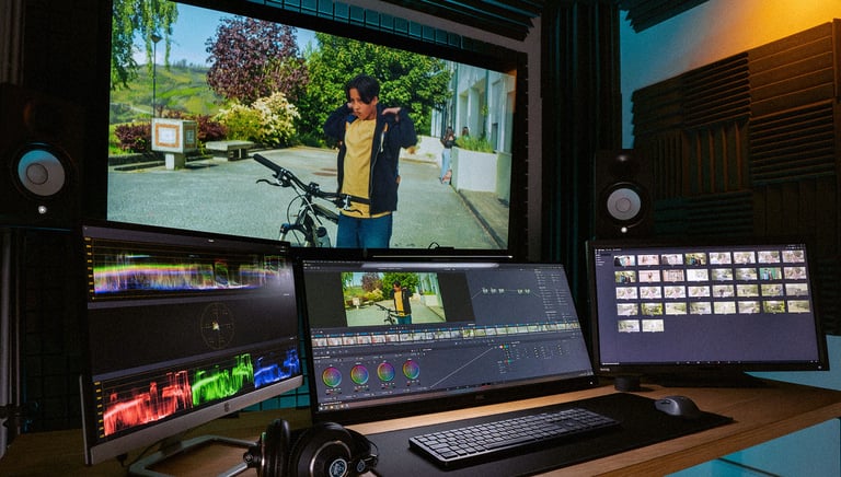 Video editing, audio mixing, mastering, and color grading are essential steps for a high-quality audiovisual project — and our specialized team masters each one of them to perfection.
